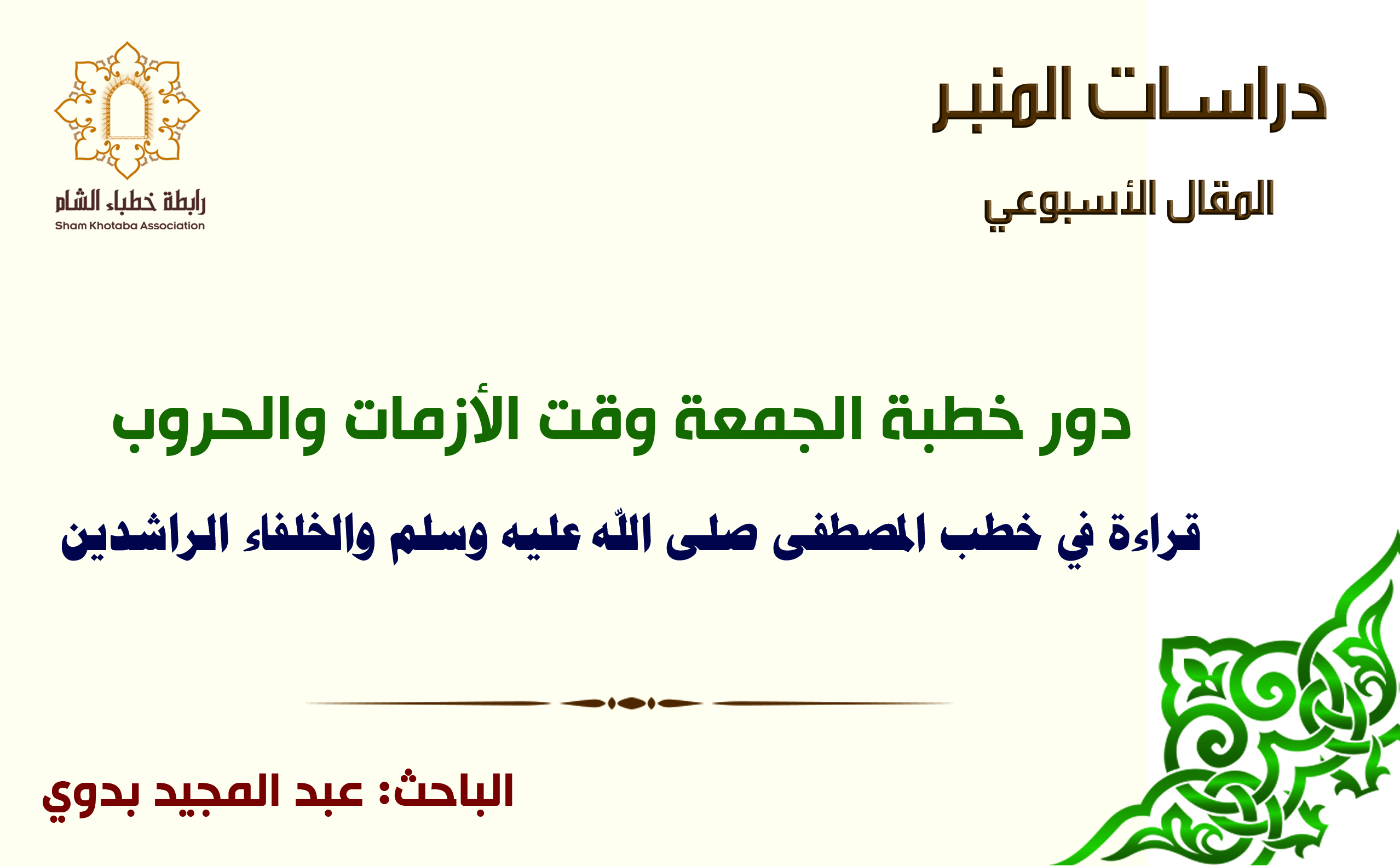 دور خطبة الجمعة وقت الأزمات والحروب: قراءة في خطب المصطفى صلى الله عليه وسلم والخلفاء الراشدين