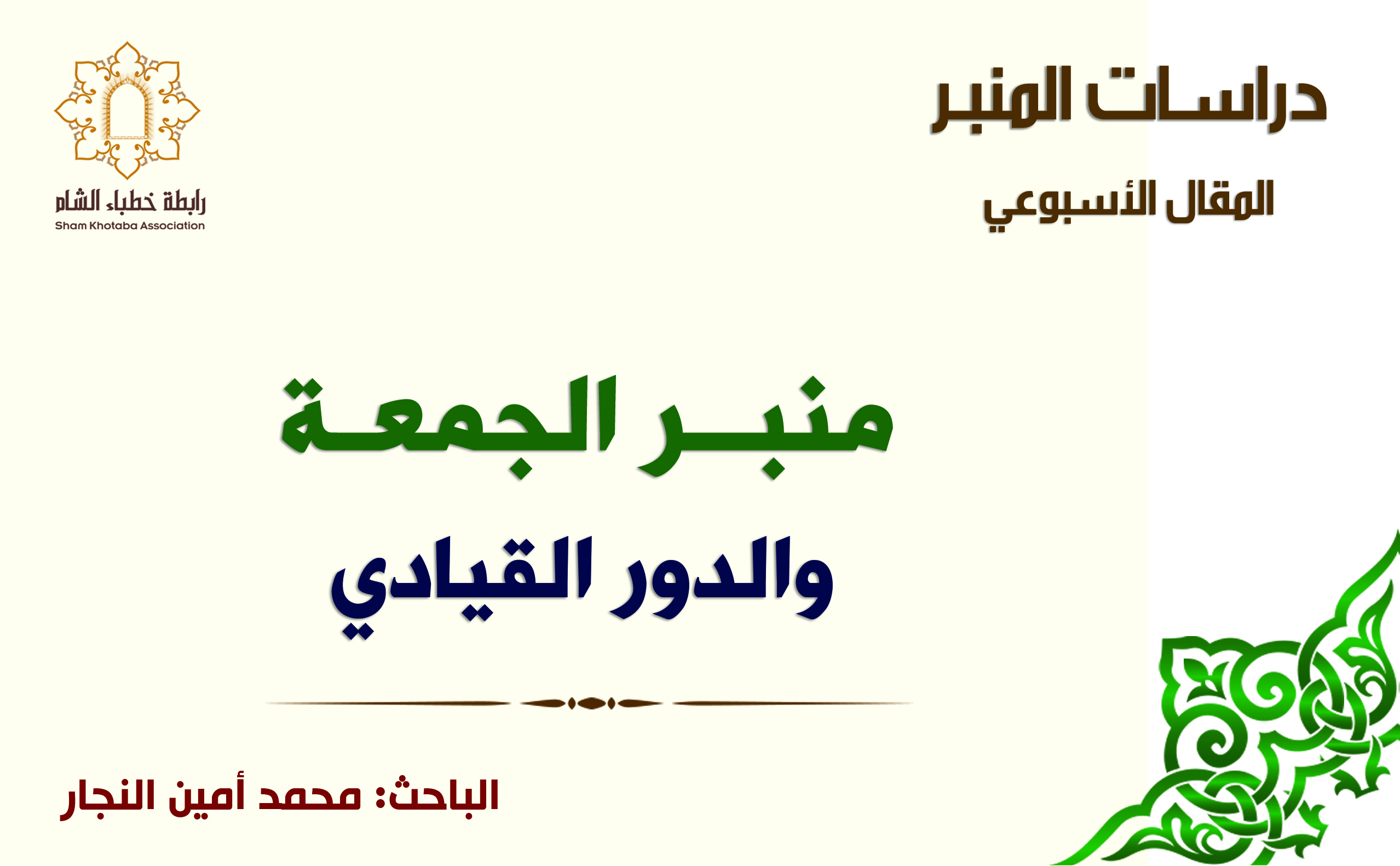 موضوع المنبر الخطبة، ولا ريب أن اهتمام الأمم بفن الخطابة لم يكن ليأتي من فراغ، بل مصدره إدراك طبيعة البشر بالتأثر أو التأثير بواسطة الكلمة الحسنة الجاذبة، والمدعومة بالحجة والصادرة بقوة إلقاء وحسن تبليغ..