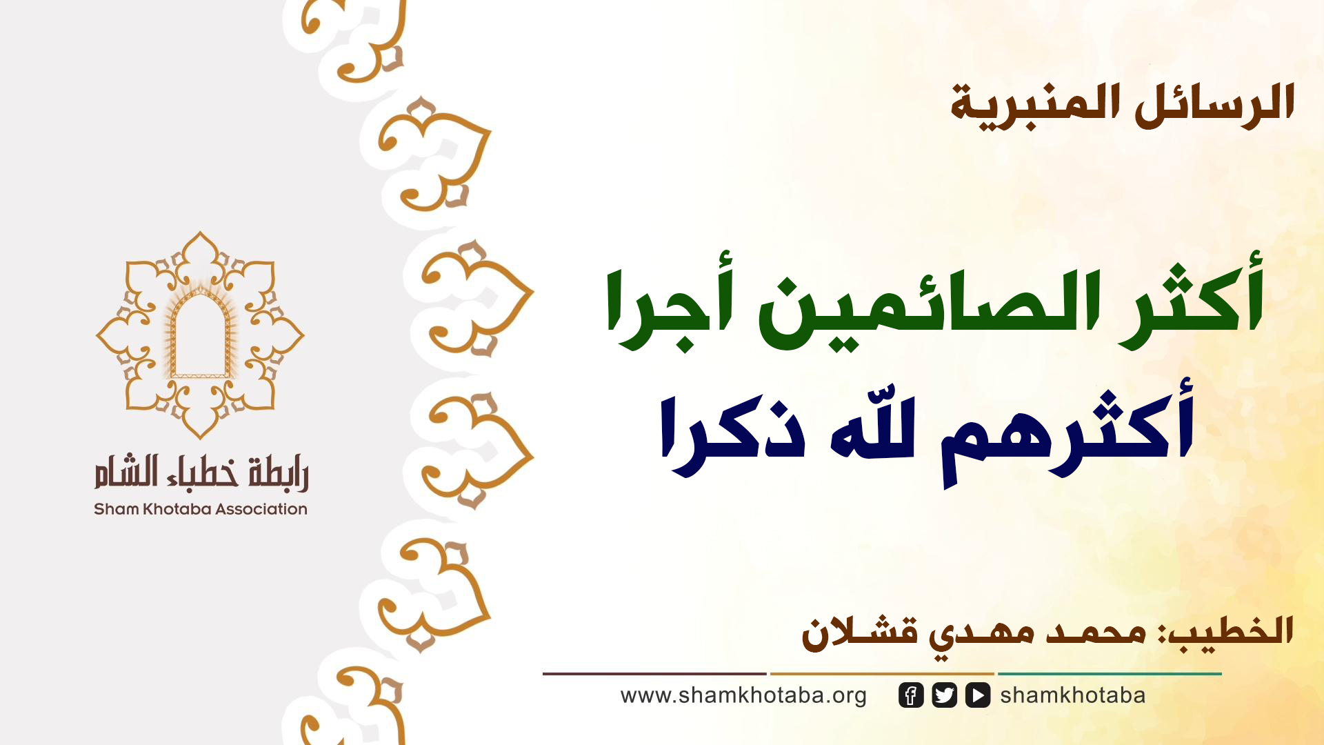 "أكثر الصائمين أجرا أكثرهم لله ذكرا"