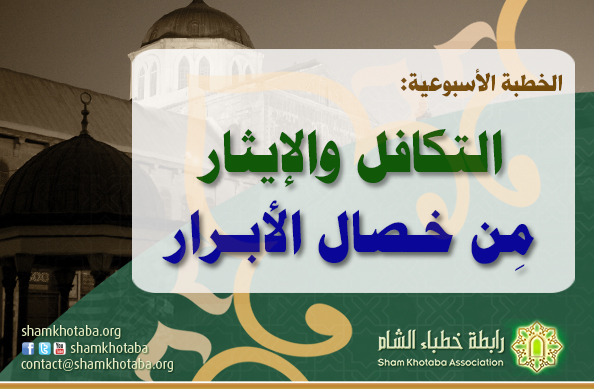 ما أحوجنا إلى هذه المعاني السّامية، وما أشدّ افتقارنا إلى التّخلّق بالرّحمة والتّعاطف والتّكافل، وهذه القيم العظيمة الّتي تضمّد جراح المنكوبين، والّتي تواسي المستضعفين المغلوبين، وتُدخل السّرور على المحزونين، وتُعين المشرّدين والنّازحين، بسبب الحروب والصّراعات، والمشاكل والفتن، ولا سيّما في هذه الأيّام، وليكن قدوتنا في ذلك المجتمع الّذي تربّى على الكتاب والسّنّة، وتأدّب بهدي نبيّنا صلى الله عليه وسلم، وهذا مثالٌ عن ذلك المجتمع العظيم، عَنْ أَبِي مُوسَى، قَالَ: قَالَ النَّبِيُّ صلى الله عليه وسلم: (إِنَّ الأَشْعَرِيِّينَ إِذَا أَرْمَلُوا فِي الغَزْوِ، أَوْ قَلَّ طَعَامُ عِيَالِهِمْ بِالْمَدِينَةِ جَمَعُوا مَا كَانَ عِنْدَهُمْ فِي ثَوْبٍ وَاحِدٍ، ثُمَّ اقْتَسَمُوهُ بَيْنَهُمْ فِي إِنَاءٍ وَاحِدٍ بِالسَّوِيَّةِ، فَهُمْ مِنِّي وَأَنَا مِنْهُمْ).