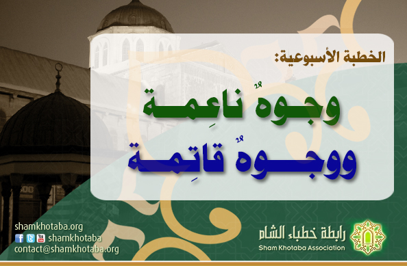 ويذكّره أنّ الّذي سيحيي الموتى سيحاسبهم، وسينتظمون في فريقين، فريقٌ في الجنّة مع سردٍ مشوِّقٍ لنعيمها، وفريقٌ في السّعير مع سردٍ منفِّرٍ مِن جحيمها، رجاء أن ينتظم أسبوع المصلّي بهذه القِيَم، فيجعلها نصب عينيه دائمًا، عالمًا أنّنا جميعًا صائرون إلى وجهٍ ناعمٍ أو وجهٍ خاشعٍ قاتمٍ، نسأل الله السّلامة، فليختر كلّ امرئٍ طريقه مِن الآن.