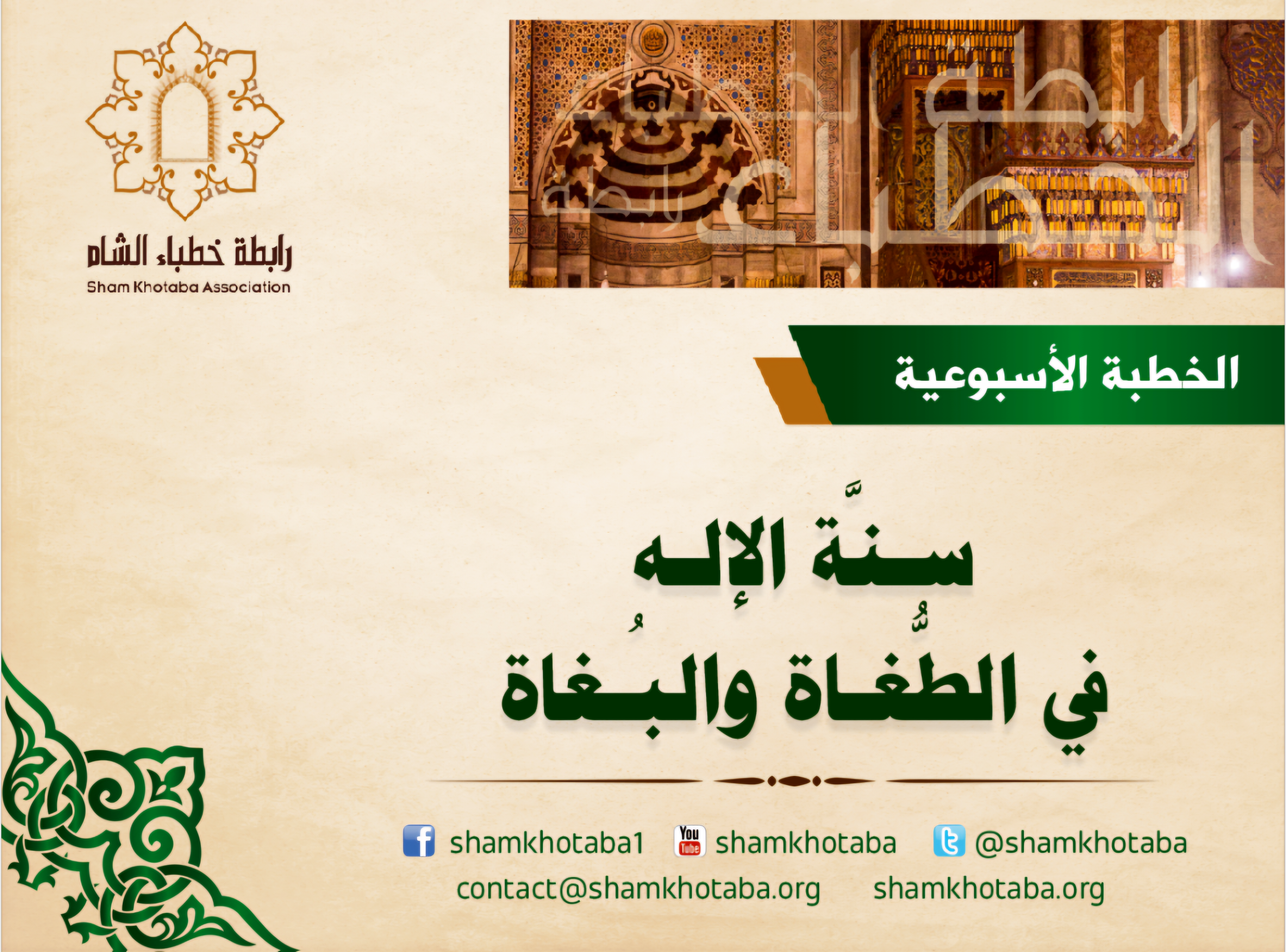 فليعتبر الطّغاة والمتجبّرون مِن مصارع الأمم السّابقة، والأقوام الغابرة، وليعلموا أنّ لكلّ طاغيةٍ يومًا مِن أيّام الله، يكون عبرةً وموعظةً للعباد، وإنّ الجبّارين المتغطرسين، والطّواغيت المجرمين، في بلاد الشّام وغيرها، بمَن فيهم اليهود الحاقدون، الظّالمون المتجبّرون، القتلة السفّاحون، مهدّدون بتعجيل عقاب المنتقم القهّار، و تقويض حضارتهم، وفساد ممالكهم، واضمحلال أمرهم، وأمر مَن تواطأ معهم، فسنّة الله ماضيةٌ في الطّغاة والظّالمين، بالهلاك والعذاب العاجل أو الآجل {قَدْ خَلَتْ مِنْ قَبْلِكُمْ سُنَنٌ فَسِيرُوا فِي الْأَرْضِ فَانْظُرُوا كَيْفَ كَانَ عَاقِبَةُ الْمُكَذِّبِينَ * هَذَا بَيَانٌ لِلنَّاسِ وَهُدًى وَمَوْعِظَةٌ لِلْمُتَّقِينَ * وَلَا تَهِنُوا وَلَا تَحْزَنُوا وَأَنْتُمُ الْأَعْلَوْنَ إِنْ كُنْتُمْ مُؤْمِنِينَ * إِنْ يَمْسَسْكُمْ قَرْحٌ فَقَدْ مَسَّ الْقَوْمَ قَرْحٌ مِثْلُهُ وَتِلْكَ الْأَيَّامُ نُدَاوِلُهَا بَيْنَ النَّاسِ وَلِيَعْلَمَ اللَّهُ الَّذِينَ آمَنُوا وَيَتَّخِذَ مِنْكُمْ شُهَدَاءَ وَاللَّهُ لَا يُحِبُّ الظَّالِمِينَ} [آل عمران: 137-140].
