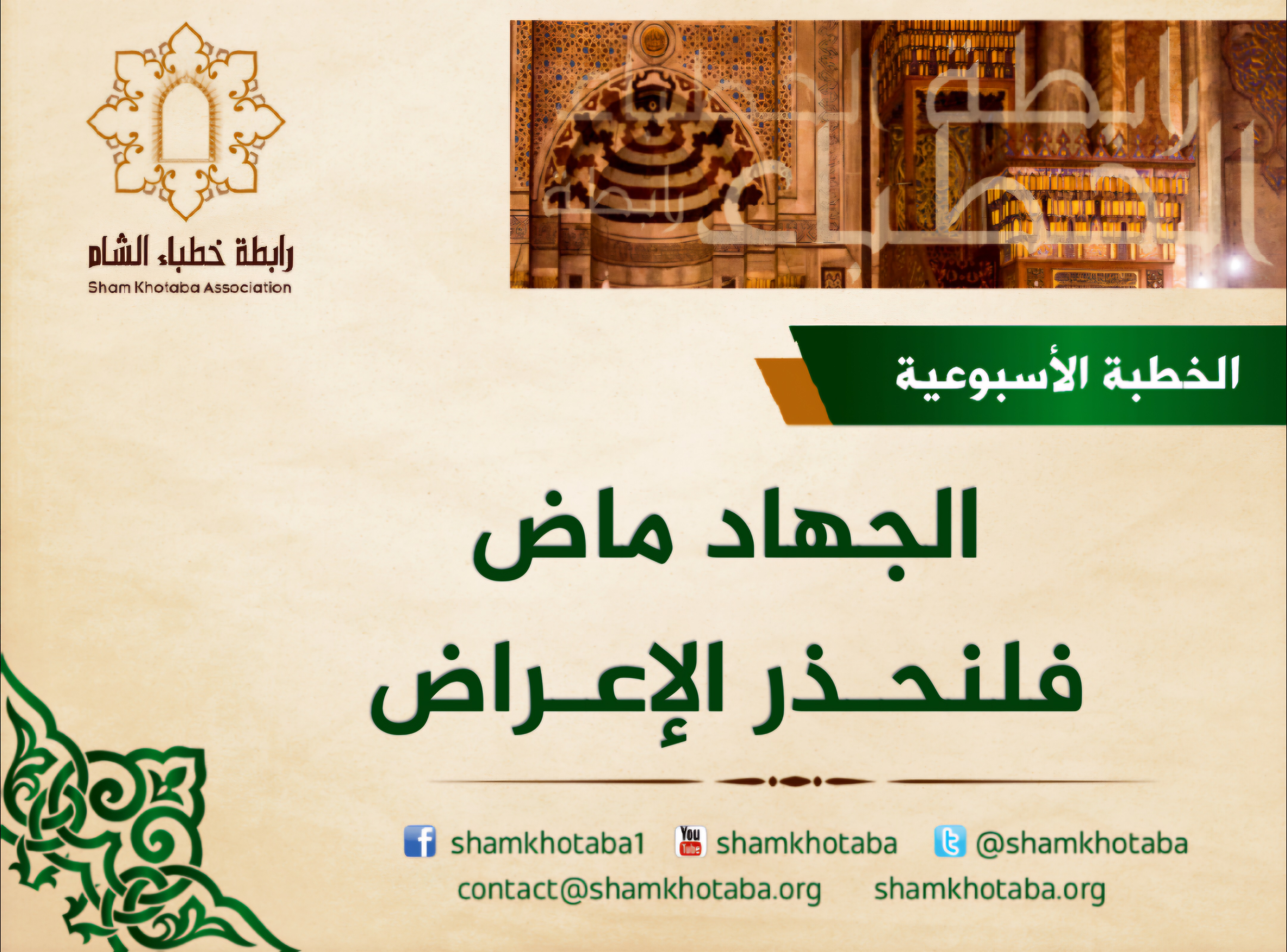 هذا أحد شروح الحديث، فالجُند يجب أن يجتمعوا ويتناصروا، ولن يتمّ اجتماعهم إلّا بالتّجنيد، أي التّجميع، فشُعبة التّجنيد ما دام الحاكم عادلًا مركزٌ يجدر أن يعتزّ المسلم به، وأن يبادر إليه في أيّ قطرٍ مِن أقطار المسلمين كان، فما بالك إن كان بالشّآم؟