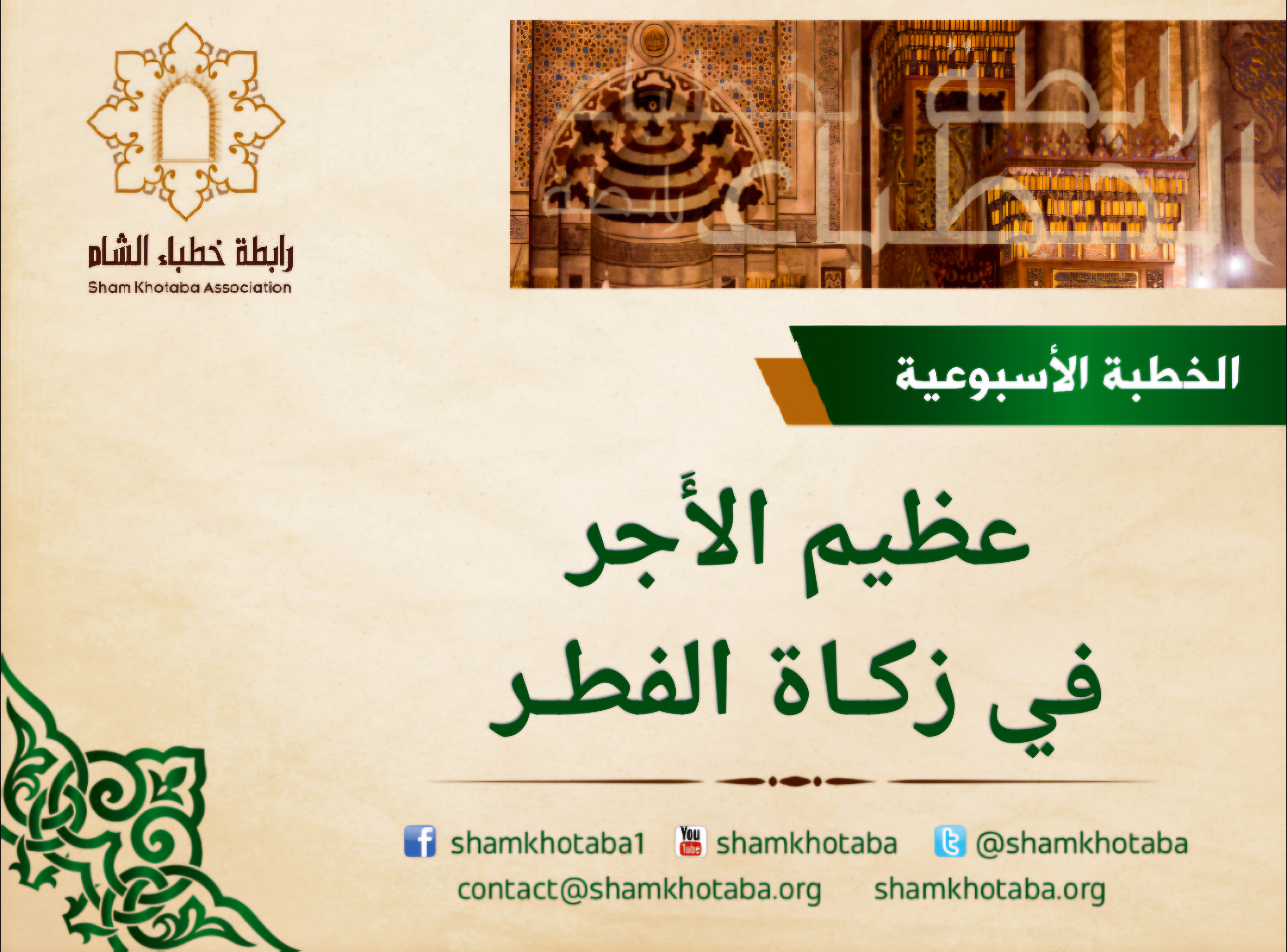 وبما أنّ عجلة الزّمان تدور، فقد أوصلتنا هذه العجلة إلى محطّةٍ مهمّةٍ في هذا الشّهر الكريم، يجدر بنا أن نتذكّر طرفًا مِن أحكامها، فقد أزف زمان وجوبها، عَنِ ابْنِ عُمَرَ رضي الله عنه: (أَنَّ النَّبِيَّ صلى الله عليه وسلم أَمَرَ بِزَكَاةِ الفِطْرِ قَبْلَ خُرُوجِ النَّاسِ إِلَى الصَّلاَةِ).