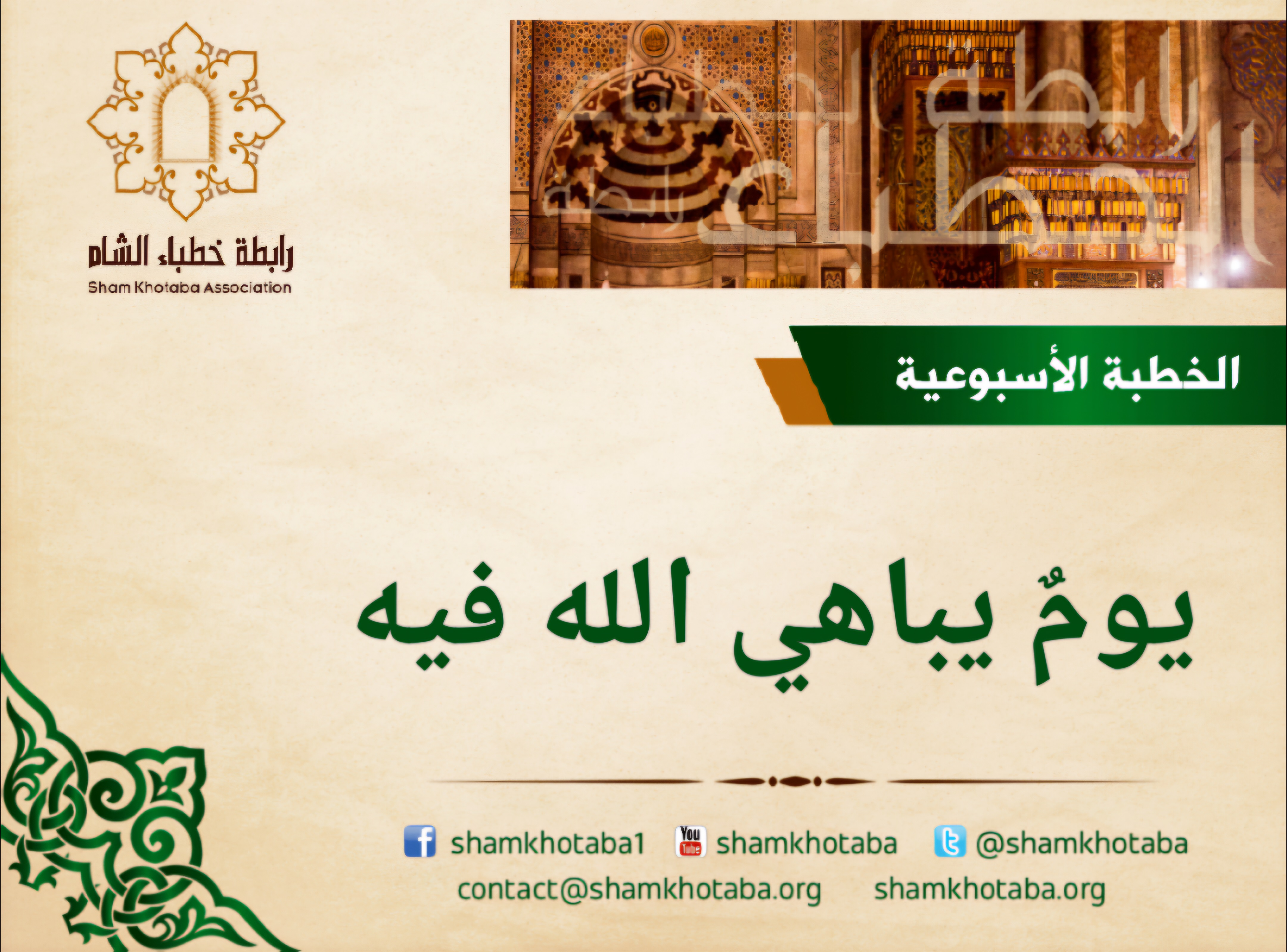 يومٌ يباهي الله فيه بأهل عرفة، عَنْ أَبِي هُرَيْرَةَ رضي الله عنه، عَنْ رَسُولِ اللَّهِ صلى الله عليه وسلم قال: (إِنَّ اللَّهَ يُبَاهِي بِأَهْلِ عَرَفَاتٍ مَلَائِكَةَ أَهْلِ السَّمَاءِ، فَيَقُولُ: انْظُرُوا إِلَى عِبَادِي هَؤُلَاءِ جَاءُونِي شعثا غبرا).