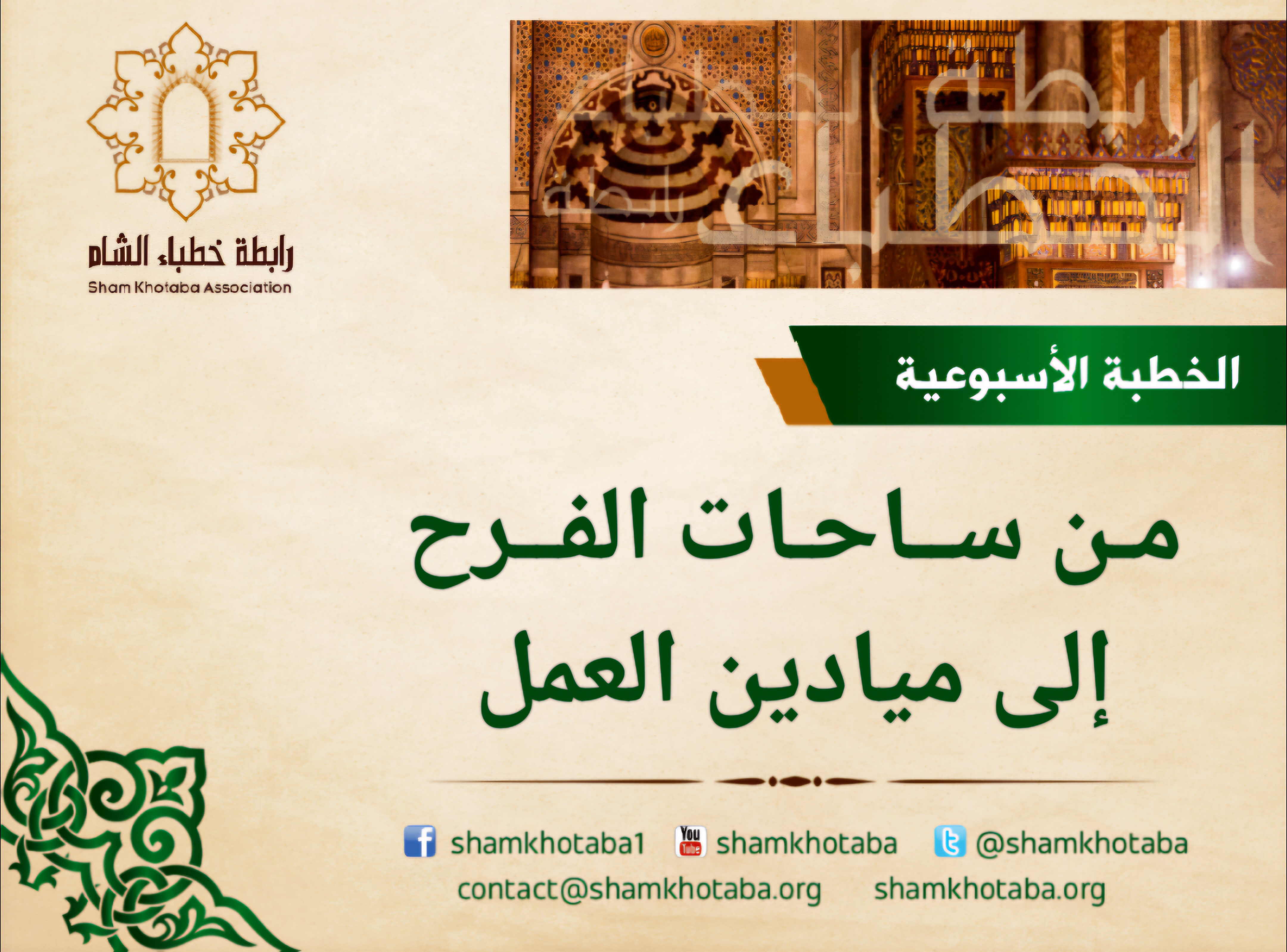 وهنا نحتاج إلى اليقظة المستمرّة الدّائمة، والوعي العميق، بحجم التّحدّيات الّتي لم تنتهِ بزوال النّظام البائد، ثمّ لننظر هل حافظنا على الثّوابت والمبادئ الّتي مِن أجلها قامت الثّورة المباركة؟ وهل طهّرنا المنشآت والمؤسّسات مِن الفساد والمحسوبيّات والأنانيّات، الّتي كانت في عهد النّظام المجرم؟ وهل أقمنا فيها العدل والمساواة والشّفافية الّتي ضحّينا مِن أجلها كثيرًا؟ ثمّ هل نحن جاهزون لردّ شرّ الأشرار الّذين يخرّبون البلاد، ويبغون فيها الفتن والفساد، فأرادوا أن يبثّوا سمومهم، محاولين تفريق شملنا، وتمزيق اجتماعنا في هذه البلاد المباركة، وهيهات هيهات، فسوريّا دولةٌ قويّةٌ متماسكةٌ مباركةٌ، عصيّةٌ على التّقسيم والتّضليل، قدّم أبناؤها الأرواح والأموال، فداءً لدِينهم ووطنهم، فلنكن مخلصين للدِّين والوطن والأمّة، لا نبحث عن حظٍّ شخصيٍّ، ولا ننساق وراء مصالح ضيّقةٍ، فالأرض لا تنهض إلّا بأبنائها الصّالحين، الّذين غُرست في نفوسهم قِيَم العدل والأخلاق، فكانوا متآلفين، وبالحقّ مستمسكين، ولكل خطابٍ ينادي بالفرقة والشّتات متجنّبين.