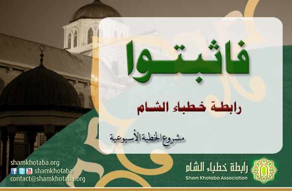 والثبات عزيز ولا يكون إلا لمن قوي إيمانه وعظمت ثقته بربه؛ لأن ما يحصل اليوم يبعث على اليأس لولا ان الله بشرنا بنصر هذا الدين، وبالتمكين للمسلمين، وأن كيد الكفار إلى بوار، وأن أموالهم وأسلحتهم ستكون عليهم حسرة، وأنهم سيُغلبون، وأن الله سينتقم لعباده المستضعفين، وأنه أعد لهم جنة سيبلغون منازلها بالشهادة في سبيله.