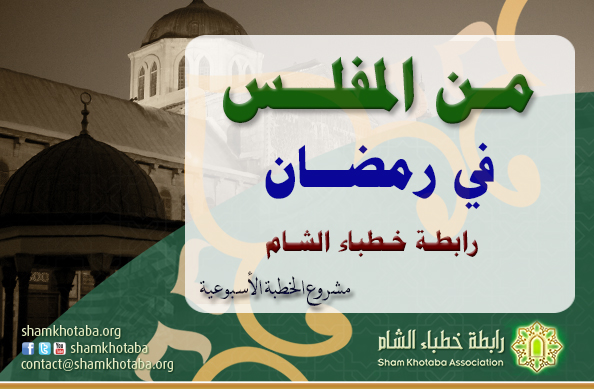 مفلسٌ في رمضان من كان رمضان حُجّةً عليه؛ لتقصيره وغفلته وعدم تعرّضه لنفحات هذا الشهر، فيكون -والعياذ بالله- ممّن أصابته دعوةٌ يذوب لها القلوب كمداً، الداعِ فيها هو عظيم الملائكة، والمؤمّن عليها عظيم البشر، عن جابر بن عبد الله: أنّ النّبيّ صلّى الله عليه وسلّم رقى المنبر، فلمّا رقى الدّرجة الأولى، قال: (آمين)، ثمّ رقى الثّانية، فقال: (آمين)، ثمّ رقى الثّالثة، فقال: (آمين)، فقالوا: يا رسول الله، سمعناك تقول: آمين ثلاث مرات؟ قال صلى الله عليه وسلم: (لمّا رقيت الدّرجة الأولى جاءني جبريل صلّى الله عليه وسلّم، فقال: شقي عبدٌ أدرك رمضان، فانسلخ منه ولم يُغفر له، فقلت: آمين...).