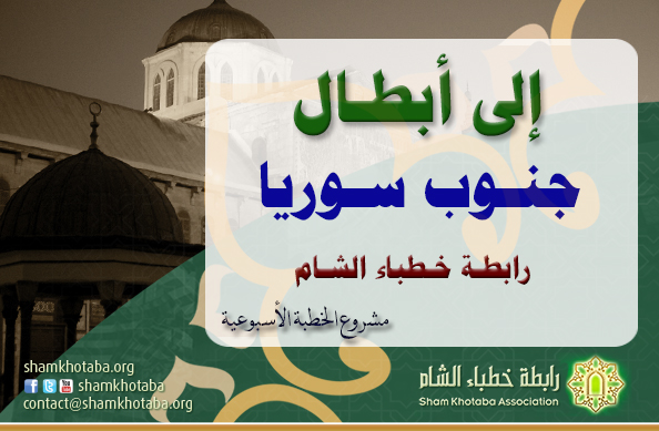 ونحن في هذا اليوم وفي الأيام السابقة نشهد تطوراً خطيراً في جنوب سوريا، حيث اجتمع الجيش المجرم الروسي مع الميليشيات التي استعان بها نظام الحقد الطائفي من المرتزقة التي أتى بها من أصقاع الدنيا، يجتمعون جميعاً بقرار واحد على الجنوب السوري، والواجبُ اليومَ على الجنوب السوري في محافظتي درعا والقنيطرة أن يجتمعوا جماعةً واحدةً، وقراراً واحداً؛ فالمصيرُ واحدٌ. وإنّ هذا هو الذي يُبنى عليه النصر، هذا في قوانين الدنيا وسنن الكون، فلا يمكنك أن تنتصر على عدوٍ مهما كانت قوتك إن كنت تعاني من تمزقٍ في صفك الداخلي، واختلافٍ في الرأي، وبحثٍ عن مصالحَ خاصةٍ، وأمجادٍ فرديةٍ!!