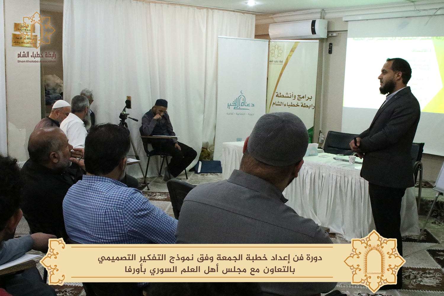 أقامت #رابطة_خطباء_الشام يوم الأحد الموافق: 2019/4/28 في مدينة أورفا التركية دورة: "فن إعداد خطبة الجمعة وفق نموذج التفكير التصميمي"، وذلك بالتعاون مع مجلس أهل العلم السوري في أورفا.