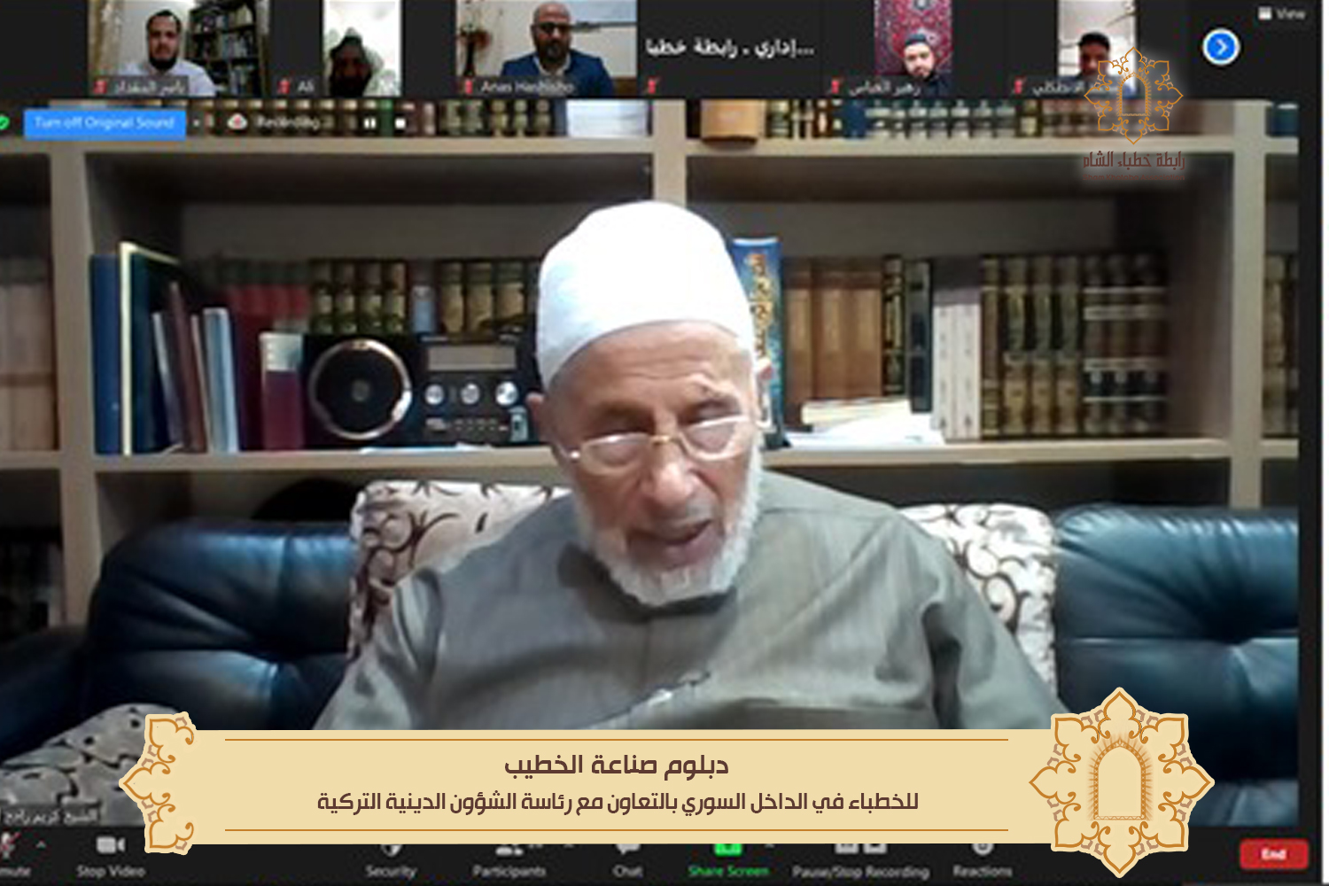 حيث جرى عقد اللقاء التمهيدي لدبلوم صناعة الخطيب مساء يوم الاثنين: 2 شعبان 1442هـ الموافق: 15 آذار 2021م، وقد ألقى الكلمة الرئيسية فضيلة الشيخ كريم راجح شيخ قراء الشام ورئيس مجلس أمناء رابطة خطباء الشام، بيّن فيها أهمية المنبر ودور الخطيب في التأثير في المجتمع وأمانة الكلمة، كما أجاب على استفسارات الخطباء، وشارك في اللقاء الأستاذ عبد القادر باكير أوغلو مندوب رئاسة الشؤون الدينية التركية.
