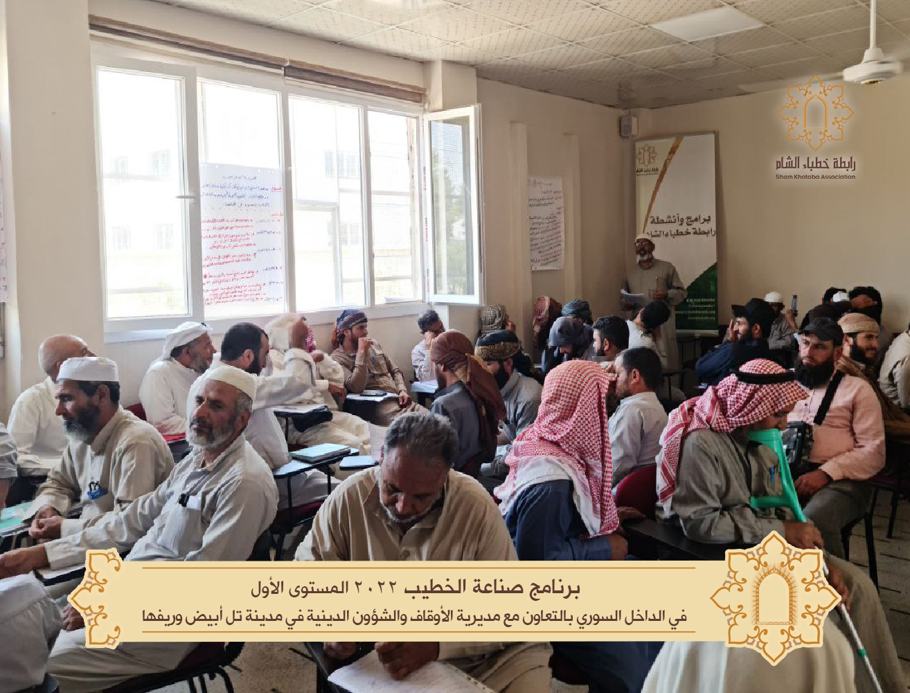 تابعت #رابطة_خطباء_الشّام بالتعاون مع مديرية الأوقاف والشؤون الدينية في مدينة تل أبيض وريفها إطلاق #دبلوم_صناعة_الخطيب في الشمال السوري حيث انطلقت أولى برامج الدبلوم "فن إعداد الخطبة وفق نموذج التفكير التصميمي" في مدينة تل أبيض وريفها والذي قدّمه الدكتور ياسر العيتي على مدار يومين بمعدل 10 ساعات ل 62 من خطباء المنطقة.