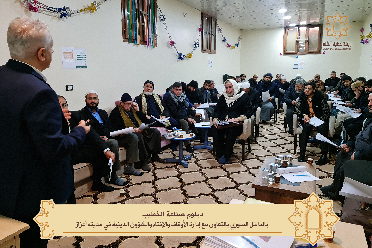 تابعت رابطة خطباء الشّام إطلاق #دبلوم_صناعة_الخطيب في الشمال السوري حيث اختتمت أولى برامج الدبلوم "فن إعداد الخطبة وفق نموذج التفكير التصميمي" في مدينة أعزاز بالتعاون مع مديرية الأوقاف والإفتاء والذي قدّمه الدكتور ياسر العيتي على مدار يومين بمعدل 10 ساعات ل 50 من خطباء المنطقة.