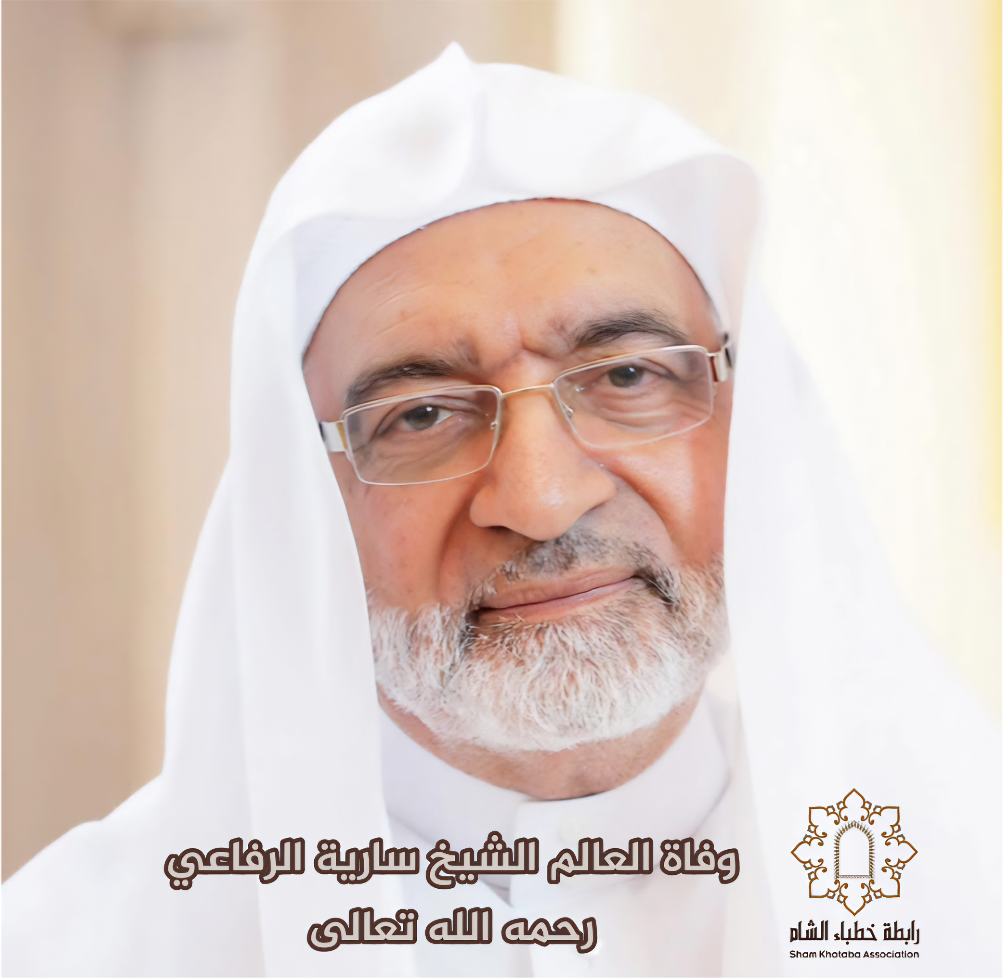 تتقدم #رابطة_خطباء_الشام إلى أسرة آل الرفاعي الكرام، وإلى أهلنا في #سوريا والأمة الإسلامية عموما بأحر التعازي بوفاة فضيلة الشيخ العالم المربي سارية عبد الكريم الرفاعي، أحد أعلام الشام ومشايخها الكبار، حيث كان له موقف صدق إلى جانب الحق وأهله ضد النظام المجرم في الشام.