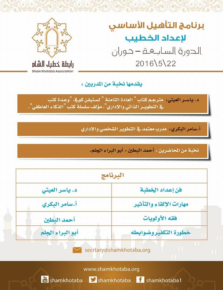 على أرض المحافظة التي احتضت شرارة الثورة في سوريا جاءت فعاليات الدورة التدريبية السابعة لرابطة خطباء الشام ضمن مشروعها الهادف إلى إعداد جيل متميز من الخطباء القادرين على استعادة دفة التغيير داخل مجتمعاتهم وزيادة وعيها بدينها لا سيما في ظل الظروف الصعبة التي تمر بها العديد من مناطق سوريا.