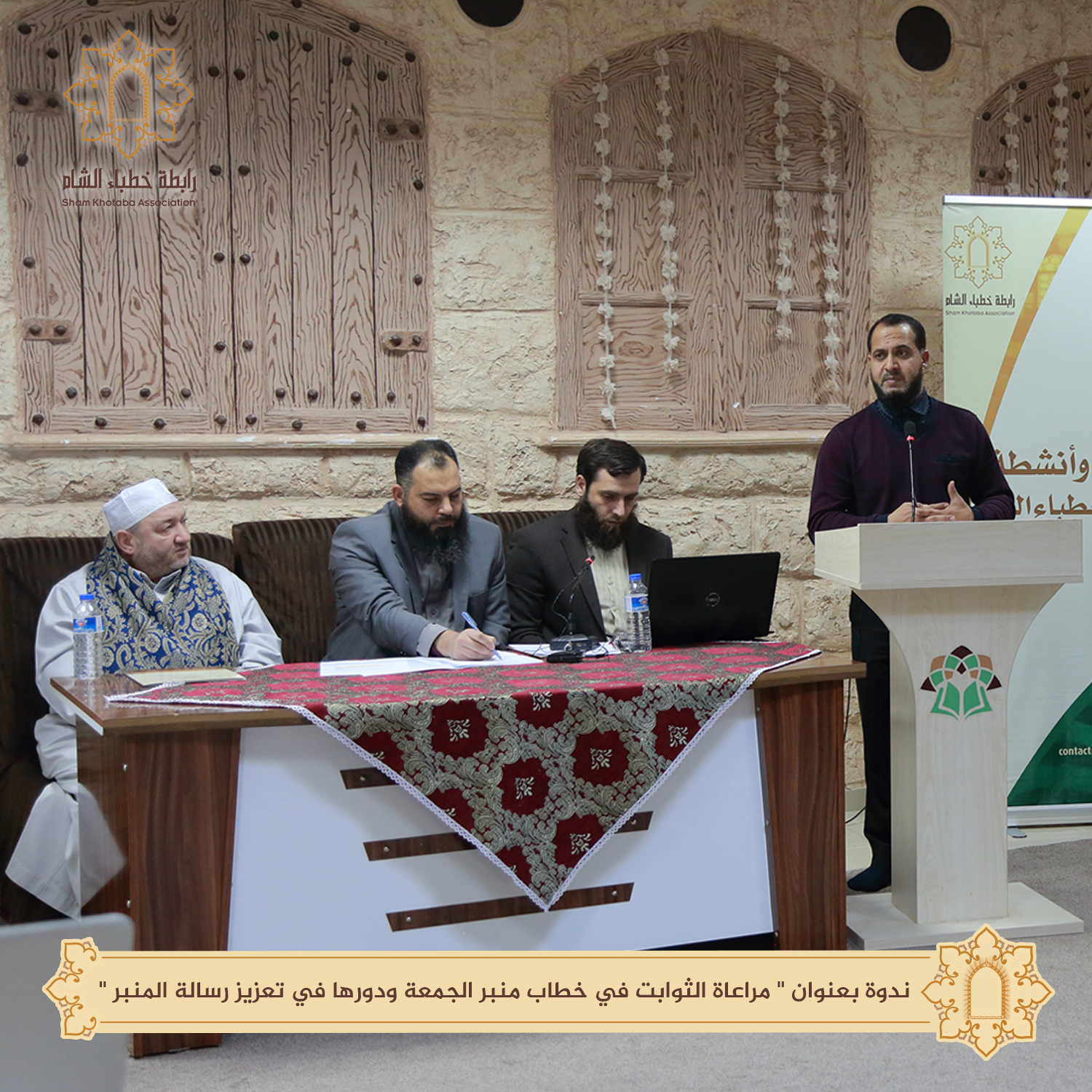 فقد عقدت رابطة خطباء الشام يوم الثلاثاء 19 ربيع الأول 1440 هـ الموافق 27 نوفمبر 2018 م في مدينة غازي عنتاب في تركيا ندوةً حوارية بعنوان: "مراعاةُ الثوابتِ في خِطابِ منبرِ الجمعةِ ودورُها في تعزيز رسالةِ المنبرِ" ضمن مشروع الندوات المتخصصة في دراسات المنبر، وذلك بمشاركة مجموعة من العلماء والباحثين والخطباء، وكانت الندوةُ على ثلاثة محاور: